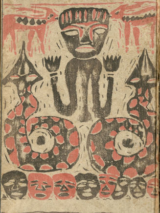 1923年鹽月桃甫為佐山融吉、大西吉壽共同著作《生蕃傳說集》進行的書籍裝幀,開啟他運用台灣原住民族圖象的設計。《生蕃傳說集》封面以木刻版畫技法、紅黑雙色,描繪排灣族、魯凱族與布農族部落在家屋、木雕、陶罐、服飾上常見的人像、百步蛇、梅花鹿,上下襯以三角形、菱形幾何圖紋,象徵祖靈的眼睛守護與警惕;內頁十一幅插圖都採用簡潔線條或是水墨簡易技法描繪原住民族的神話,或許是他剛抵達台灣而尚未充分理解原住民族文化藝術的特色,抑或是還在摸索個性化的表現形式。雖然內頁插圖尚顯得呆板生硬,但是搭配封面將原住民族文化藝術題材結合版畫風格,成為日治時期台灣書籍裝幀的經典之作。